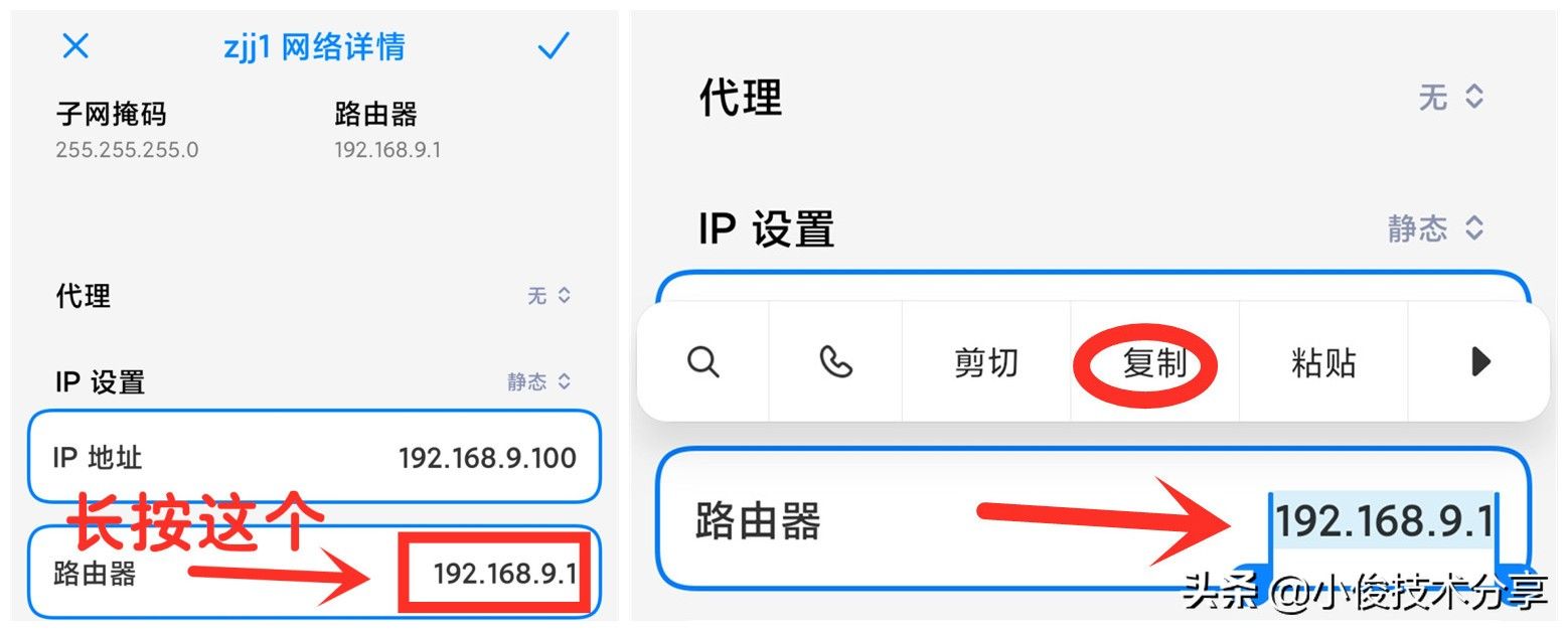 然后就可以看到有个【路由器】地址,我们长按这个选择【复制】