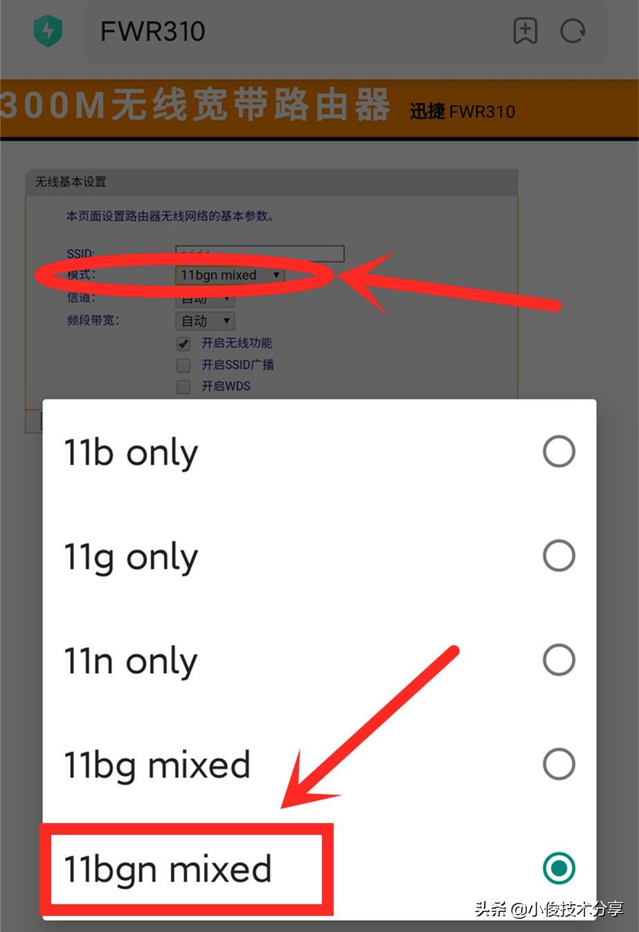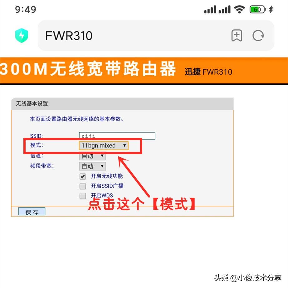 接着在右边就可以看到无线参数的所有设置,在这里我们会发现有个【模式】的开关,由于路由器品牌不一样,有些路由器叫【信道】而我这个【路由器】则叫【模式】,其实都是一样的!