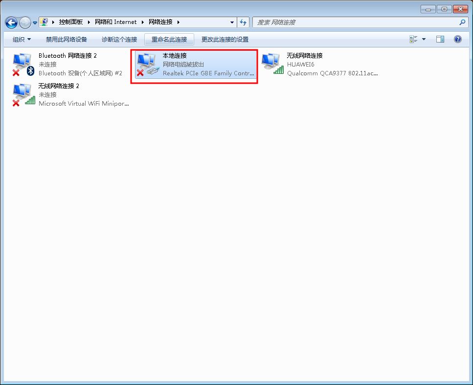 5.在本地连接菜单下右击调出TCP/IP设置菜单。