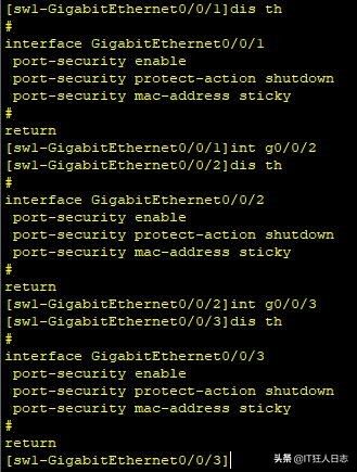 port-security mac-address sticky //开启接口Sticky MAC功能;