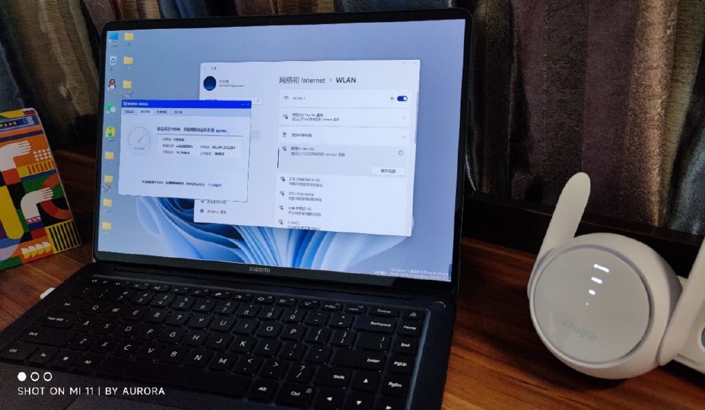 这一位置PC测试结果:WiFi约为100M,下载速度约为14.7MB/S,相较于充分接近主路由器时,总体效果衰减了约⅓。我认为在这样的距离下能还原主路由器⅔的效果,这个中继效果已经很不错了。