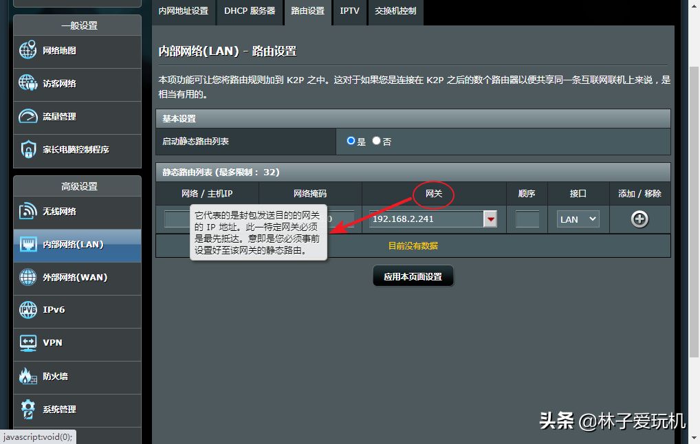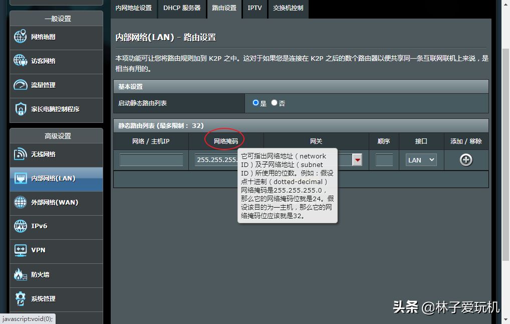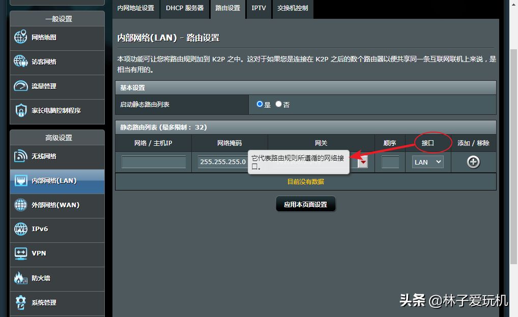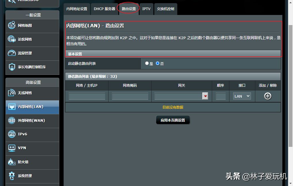 路由设置:这对于如果您是连接在 K2P 之后的数个路由器以便共享同一条互联网联机上来说,是相当有用的。