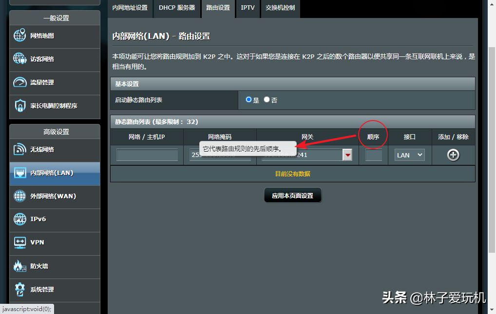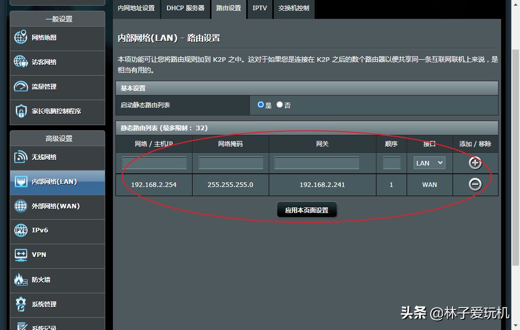 其中重要的是网络/主机IP、顺序、接口这三项内容设置时注意对应规则,不要弄乱了。这里不做过多的说明,后期会就静态路由列表进行一个详细的讲解。