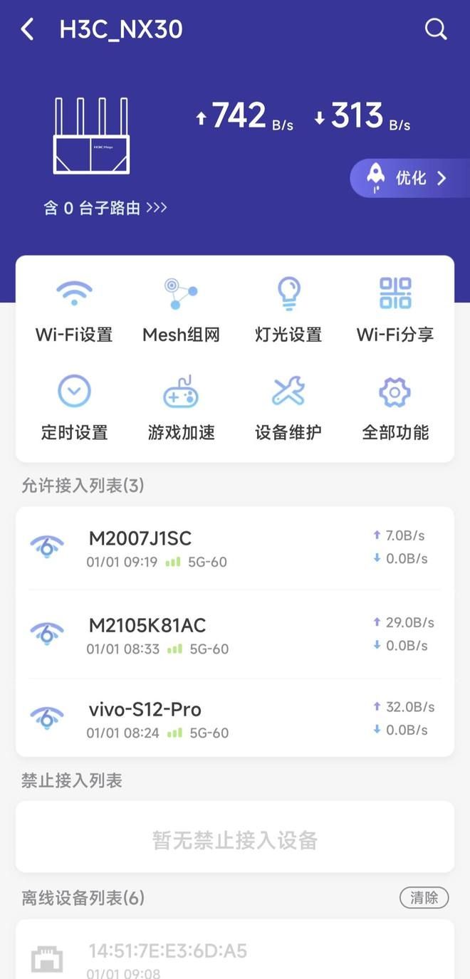 H3C Magic路由器还有一个专门路由器控制APP——H3C魔术家,在APP里面可以自己设置关于路由器的所有功能,例如:Mesh组网,连接设备,WiFi设置,WiFi强度,灯光设置,网易uu游戏加速,定时设置,网速优化等等一系列功能,需要更专业的控制可以去网页版设置。