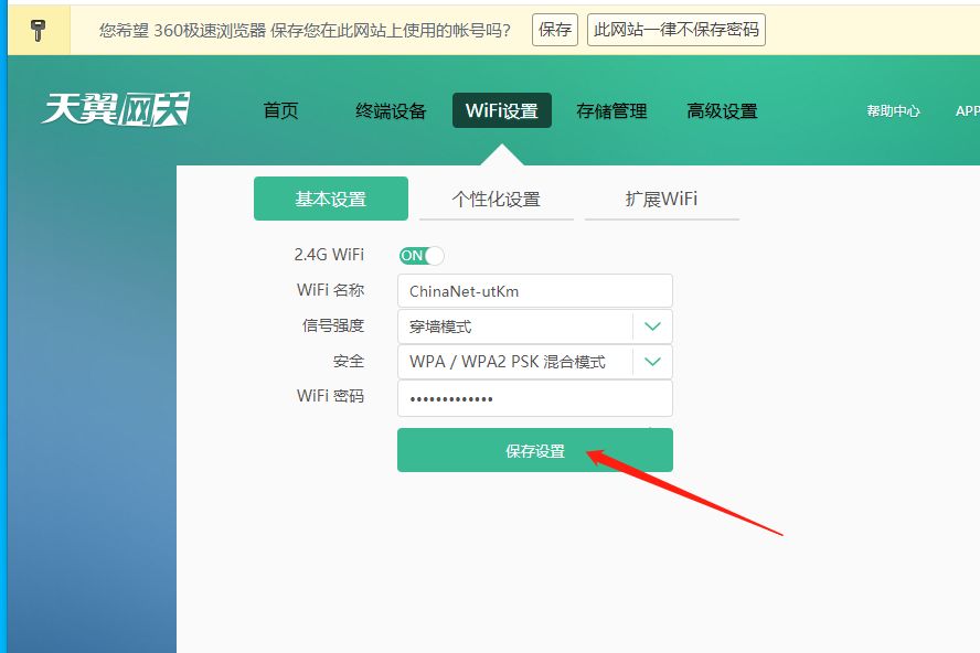 最后选择保存设置即可,这样就在也不用担心WIFI信号弱啦