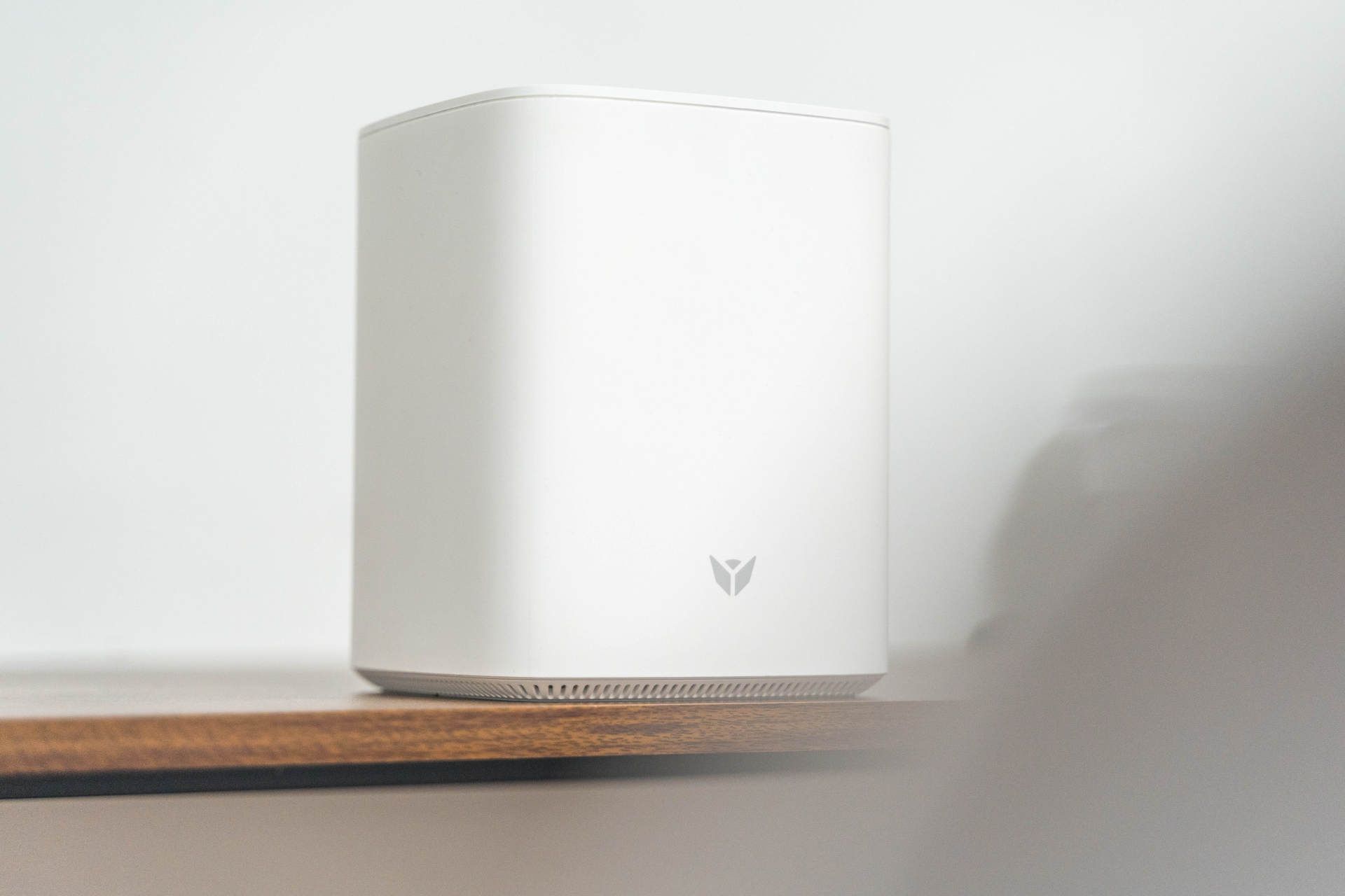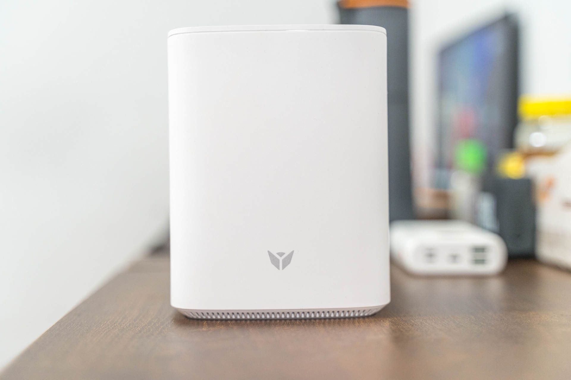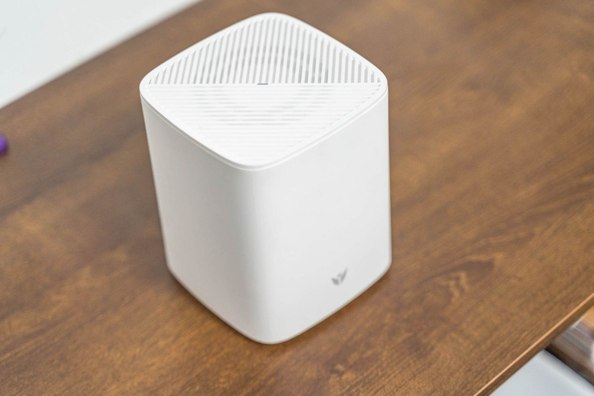打开包装就看到了,京东无线宝云路由64G版的主体,这款路由器的形状偏向于一个立方体。而之前大家的刻板印象的路由器完全不一样,并没有天线设计,而这款将4根天线融入了整个路由器的盒子。