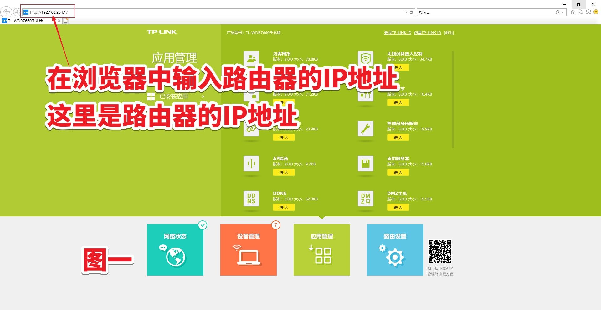 首先打开路由器的管理界面,在浏览器中输入路由器的IP地址,如果你不知道你的路由器的IP地址是多少,可以在路由器的背面进行查看,具体看图一。