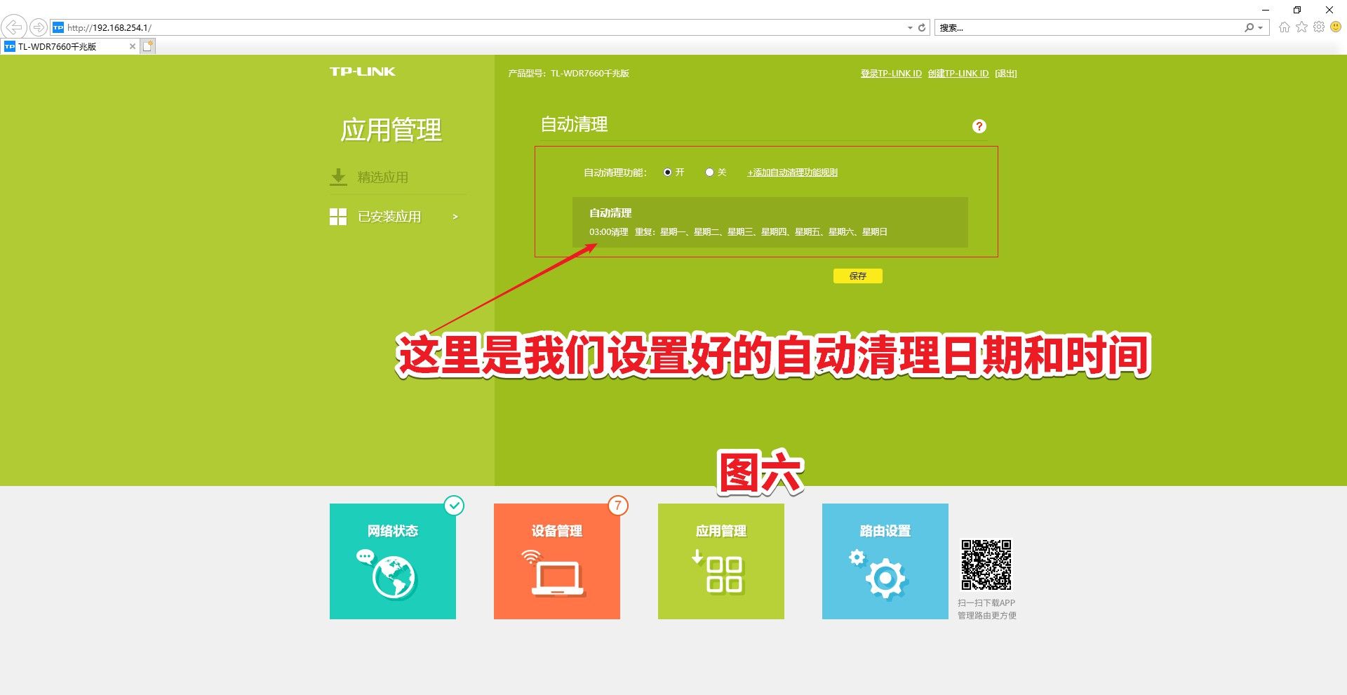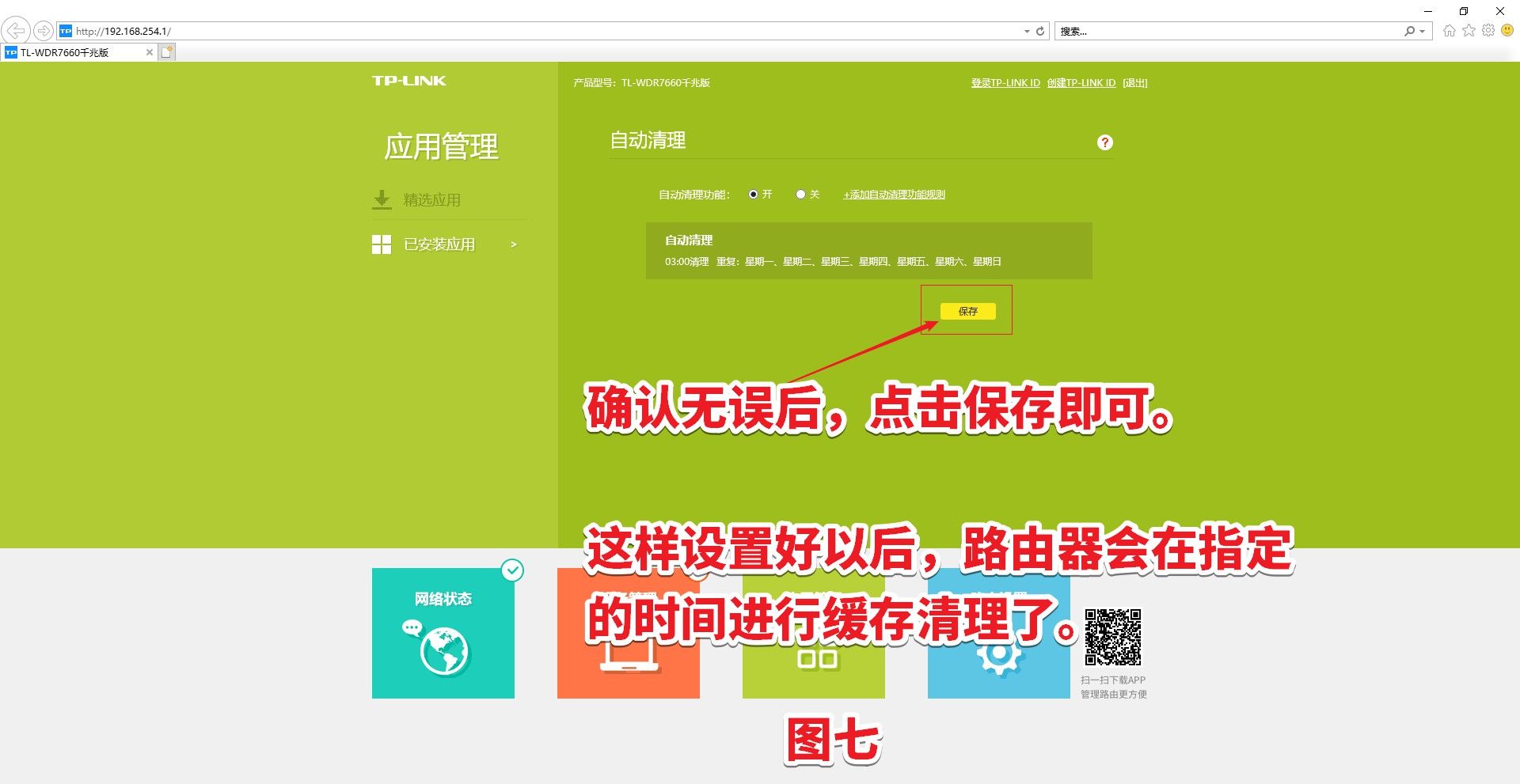 确认无误后,点击保存即可,这样设置好以后,路由器会在指定的时间段进行缓存清理了,具体看图七。