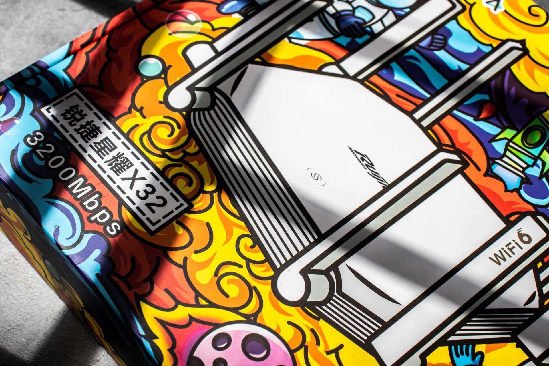 锐捷星耀X32的主题设计概念围绕了当下年轻人对网络的依赖性,针对刚需而匹配了这么这一款经济实用的WiFi路由器。包装方面大改了传统的风格设计,以宽广的太空环境刻画出了动漫形象,我想这副画面表达的是X32的信号传输能力足够强大,对于多设备联网或者大户型都能兼容。