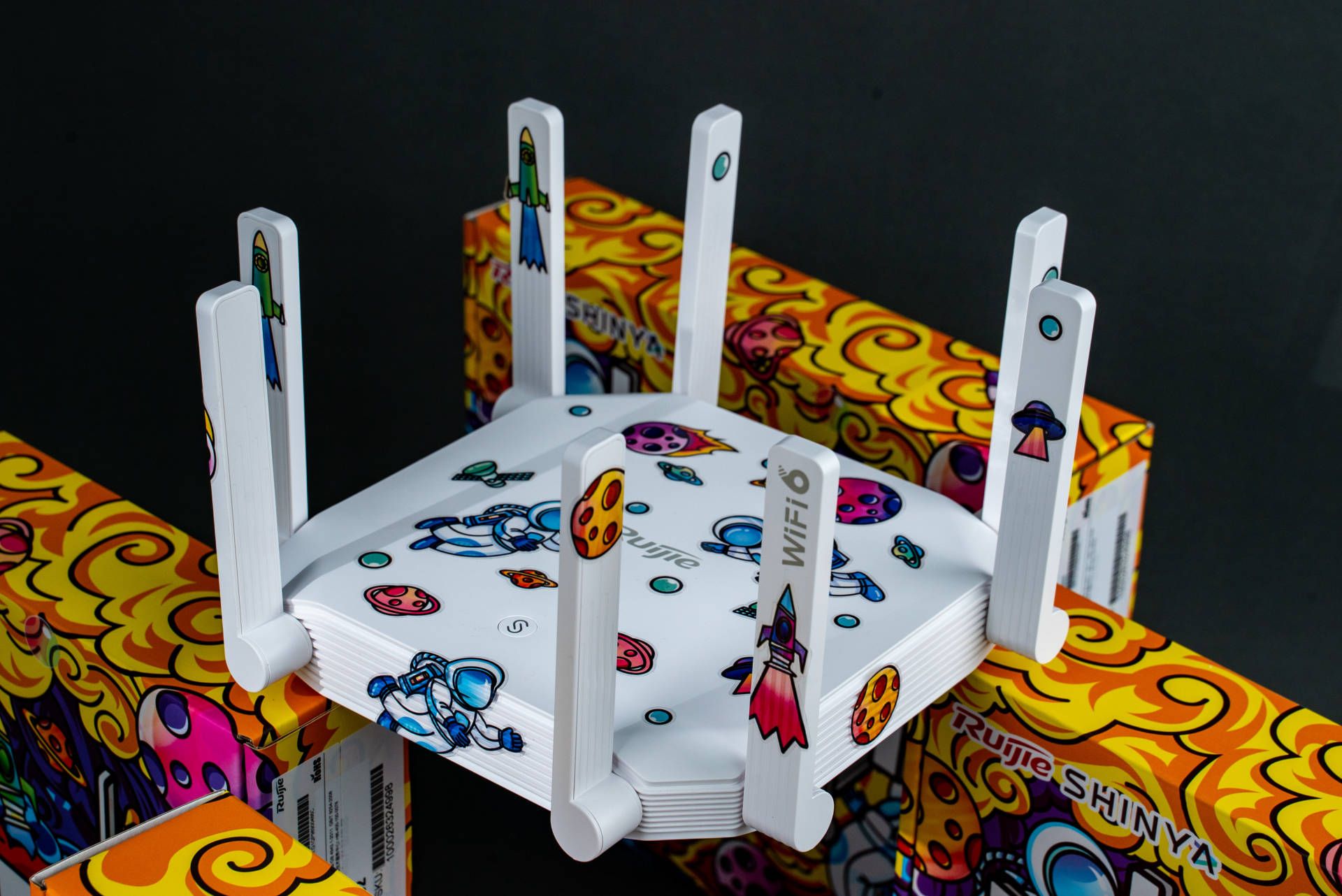 其中,X32路由器中还附送了外包装盒中的卡通航天员、火箭、星球等贴纸,可以给白色的路由器增添更多的青春潮流范,这也算是提供了个人自定义的设计。