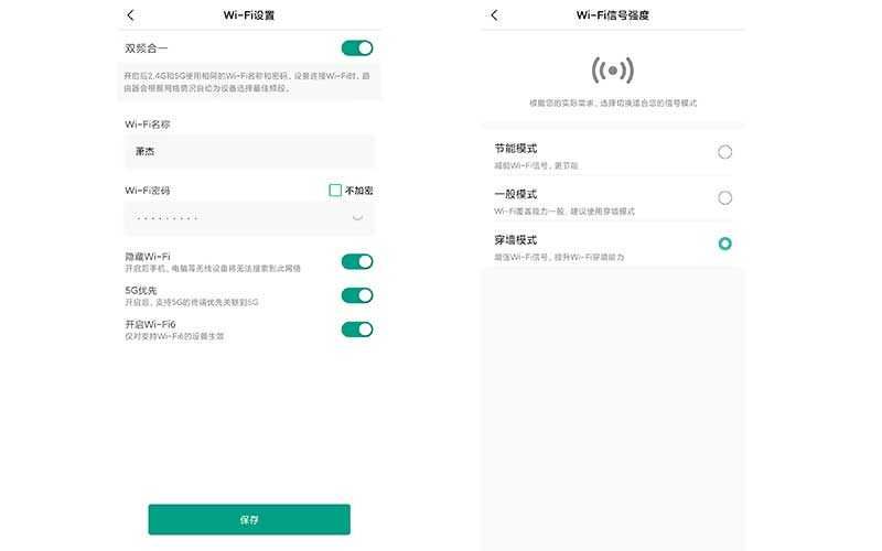 锐捷星耀X32路由器可在APP上可以在线实时查询当前设备网络连接状态,同时也可以将双频(2.4G/5G)Wi-Fi信号二合一。Wi-Fi强度方面提供了节能模式、一般模式和穿墙模式,可以根据个人使用环境进行选择。