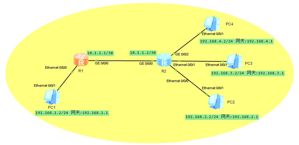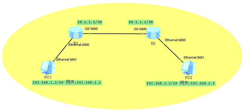 R2的等价静态路由配置: