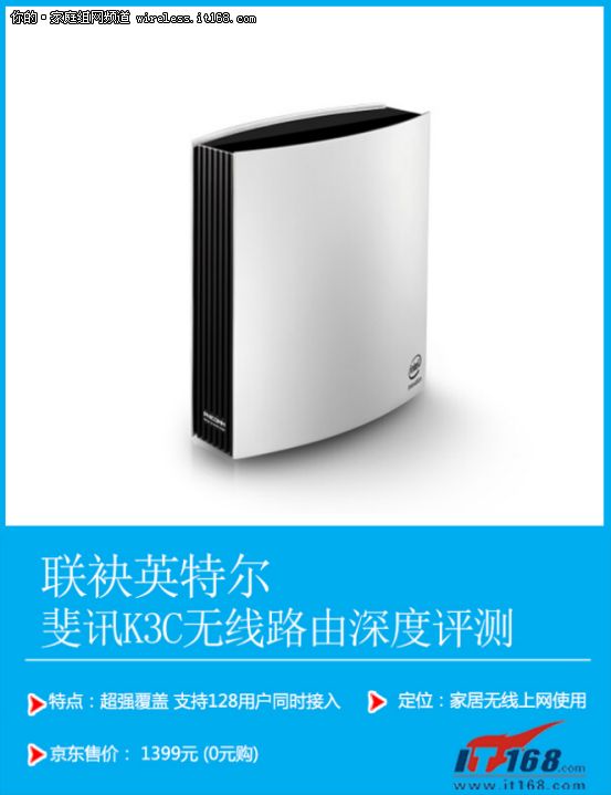 说到产品本身,斐讯K3C无线路由器相较于斐讯K3略有不足,但斐讯K3C秉承“我就是我,是不一样的烟火”的理念,有着诸多的亮点:斐讯K3C搭载了Intel GRX350处理器,内置了硬件网络加速模块Intel inside,是国内WiFi市场首次搭载英特尔WiFi芯片组。