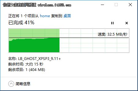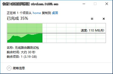 连接完毕,我们通过PC端访问NAS设备,并拷贝NAS上的测试包(多个ISO格式系统镜像)到PC端,通过测试可以得出,通过有线传输速率能够达到每秒110MB左右,作为一款千兆的无线路由器产品能够有如此表现可以说是相当强悍。