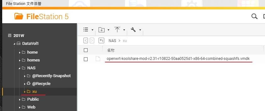 4、下载完成后,我们将LEDE 软路由固件,放在NAS的任意文件夹下,方便后面调取: