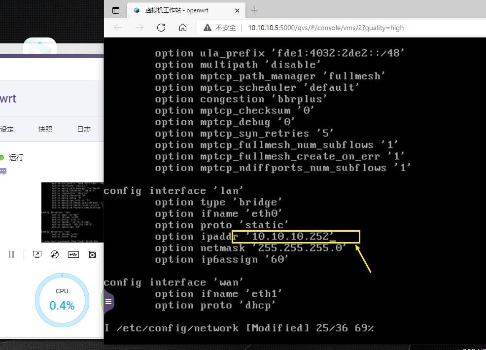 12、重启完成后,我们打开一个网页,输入我们设置的IP地址,比如:10.10.10.252