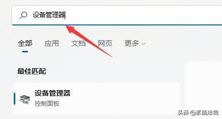 2、此刻我们可以试着开启开始菜单,在上边搜索并进到“机器设备管理器”