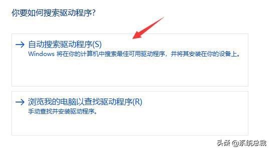 4、最终选择“自动搜索驱动程序”让电脑上给你搜索并安装驱动就可以。