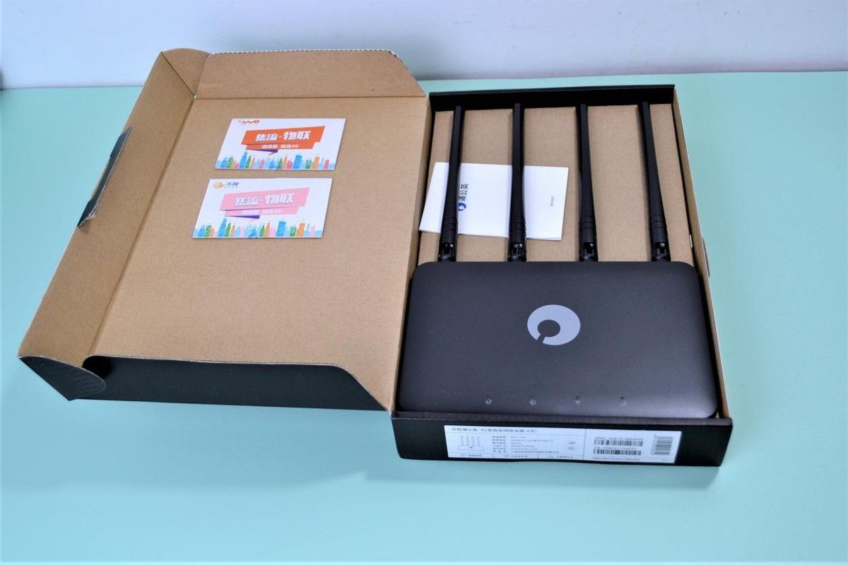 打开包装盒,里面装着路由器主机、电源适配线以及使用说明书,同时,还配备联通物联卡与电信物联卡,方便没有大流量卡的小伙伴上网用。