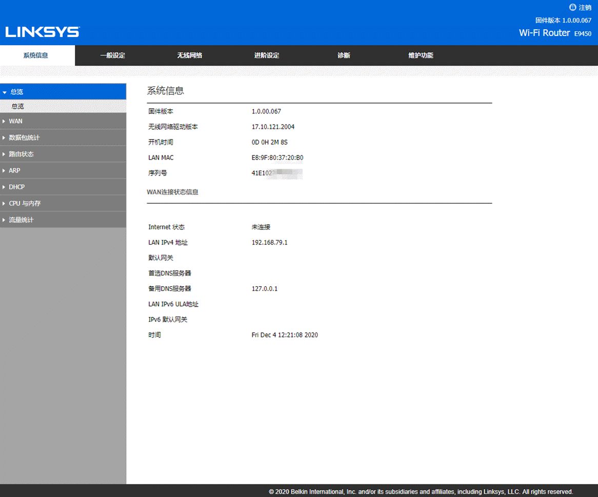 LINKSYS的PC端路由器后台管理界面,还是比较简单易懂的,基础功能在一般设定里都能很轻松的找到。Mesh设置也很清楚,中继AP的状态一眼就能看到。截稿时手机APP端还没有更新LINKSYS E9450的设置部分,等一手后续更新。