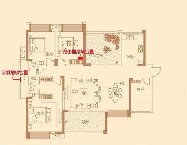 信号质量方面,下面是户型图,三室两厅两卫,之后的测试都是在这个屋子里做的。