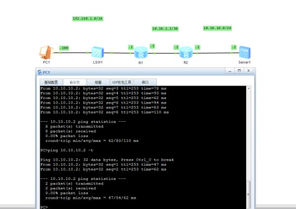 ip route-static 192.168.1.0 255.255.255.0 10.10.1.1