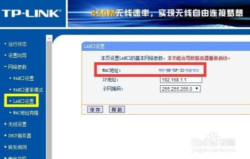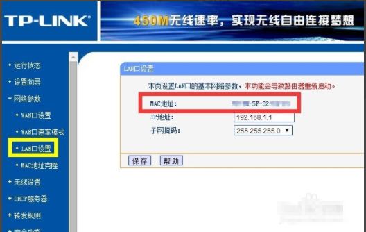 登陆路由器后台后,切换到“网络参数”-“LAN口设置”选项卡,在此就可以找到路由器的MAC地址。