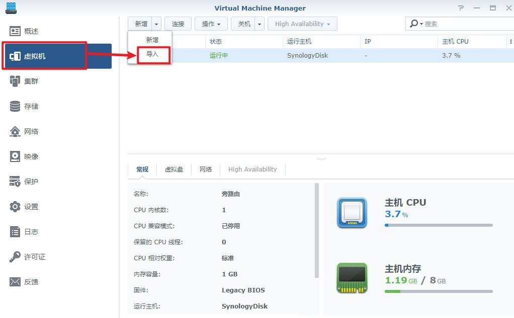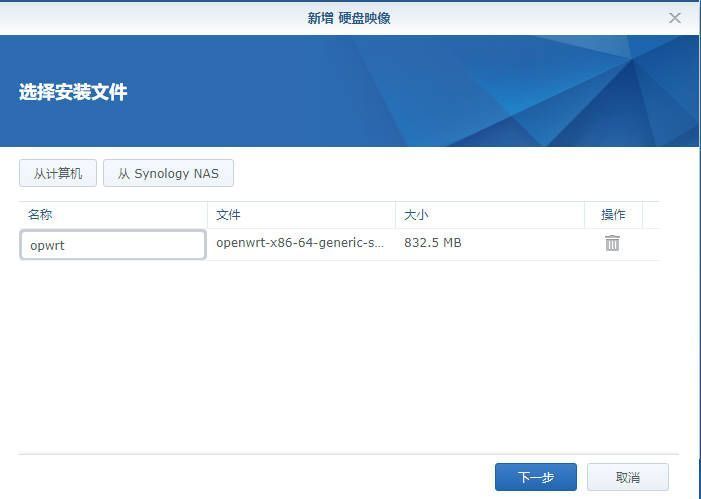 进入群晖套件中心,打开Virtual Machine Manager——映像——硬盘映像——新增——从计算机——选择刚才解压缩的img文件