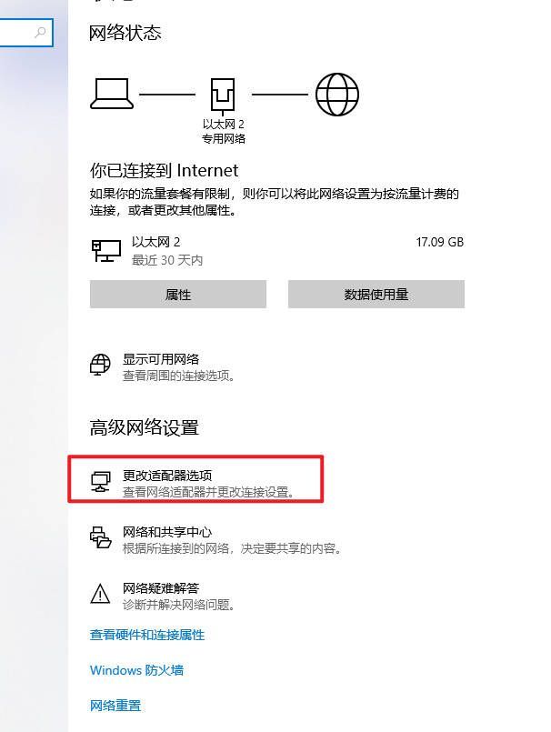 选择“更改适配器选项”