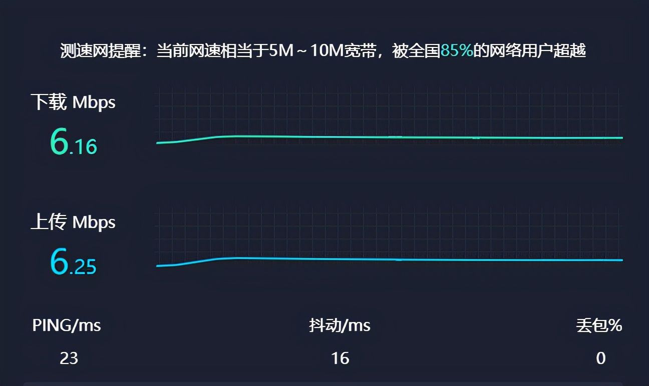 蒲公英X4C的网络信号真的是很不错,我们工地上手机信号经常才三格,甚至有时都没有4G信号,但是用蒲公英X4C却能得到稳定的WIFI网络,我这边实际测试了一下,上传速度稳定在为6.25Mbps,下载速度能够稳定在6.16Mbps,别说解决我日常收发邮件使用,就是用来刷网页,刷视频,也能够满足了,这与手机热点的速度相比,真的不是快了一点半点。