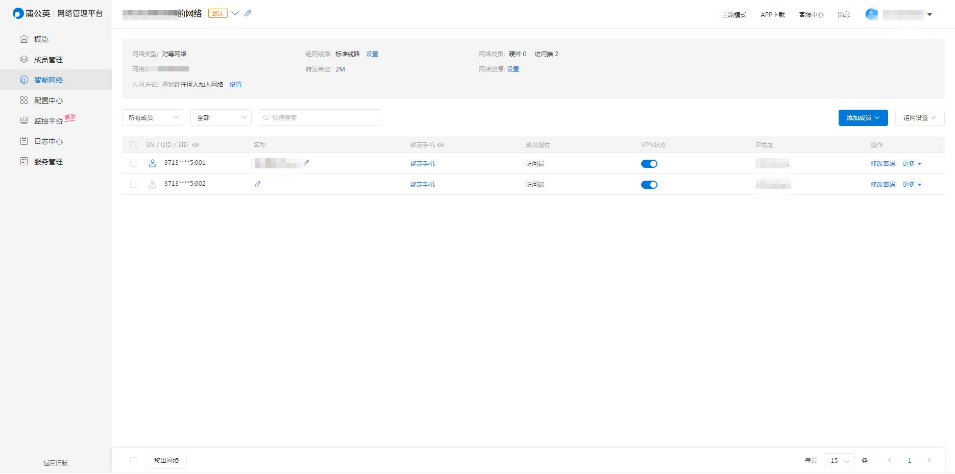 网络创建完成后,我们可以通过四种方式增加成员,唯一需要注意的是,免费的组网名额只有三个,如果成员过多需要升级扩展名额。