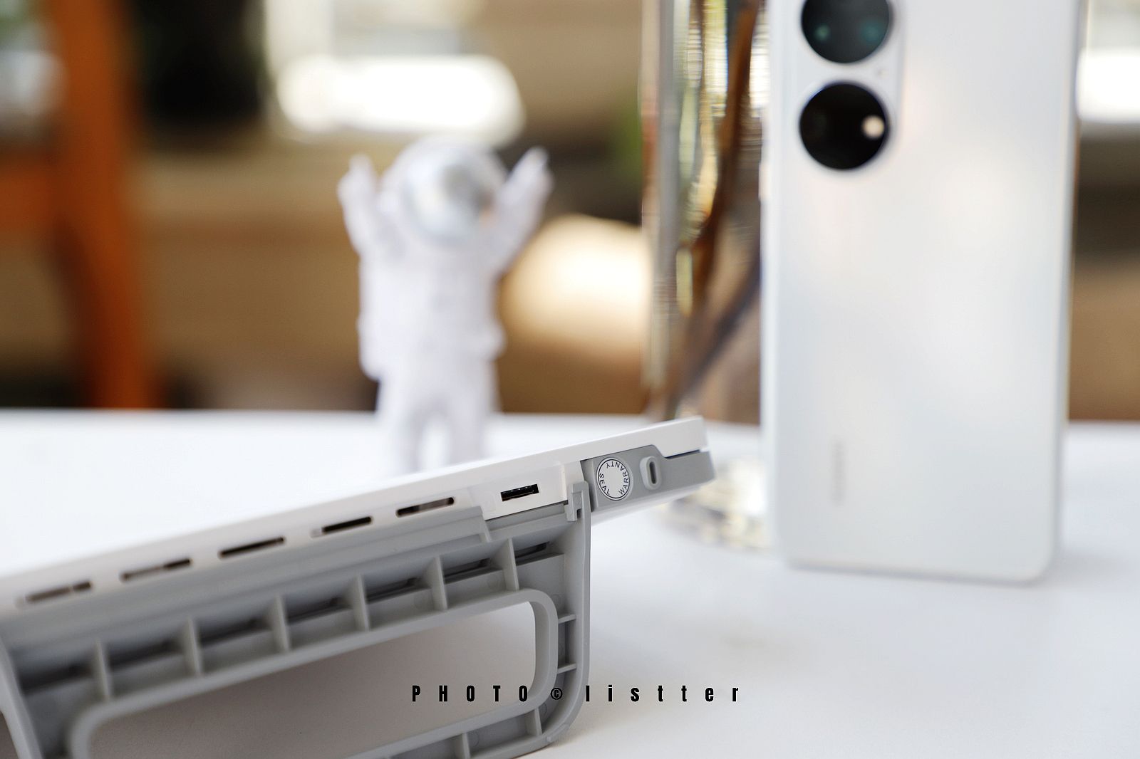 在外观上,华为移动路由Pro和前代产品变化不大,机身采用拼接撞色设计,机身比传统路由器轻薄很多,而且底座也支持拆卸,方便装到行李箱和背包里。
