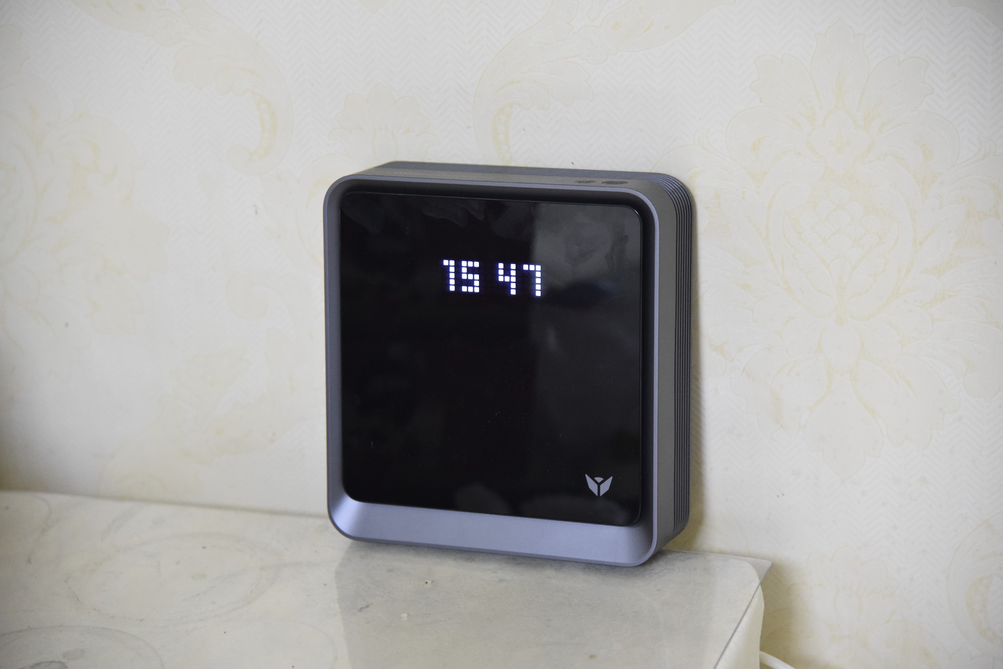 雅典娜的外观设计方面与上一代差异很大。之前的产品外观是大方盒,不过,雅典娜的好像也是一个方盒,不过更大,且扁平。但是雅典娜的外壳用料更显高端,正面有一大块黑色有机玻璃,再配合点阵式LED显示屏,更显高大上。显示的内容,在线设备数量、时钟、上行速度、下行速度、积分、天气都可以选择。相比之下,之前的鲁班就像屌丝了。