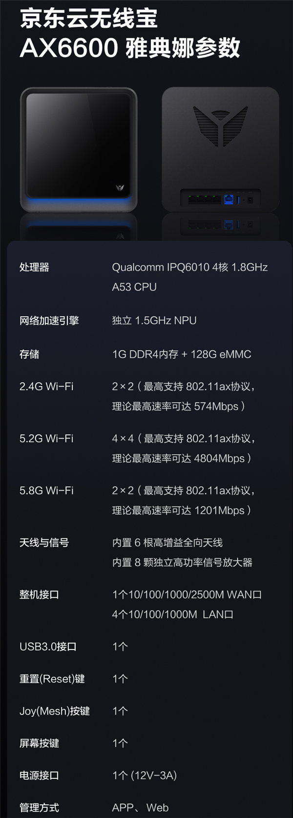 不过,这里有一个“不务正业”的跨界玩家。京东云,它是京东旗下的云服务、云计算品牌。它似乎与家用网络设备没有关联性。但它却跨界推出京东无线宝云路由系列家用路由。比如,我刚刚放入手的京东无线宝云路由AX6000雅典娜 ,就是它新一代产品。