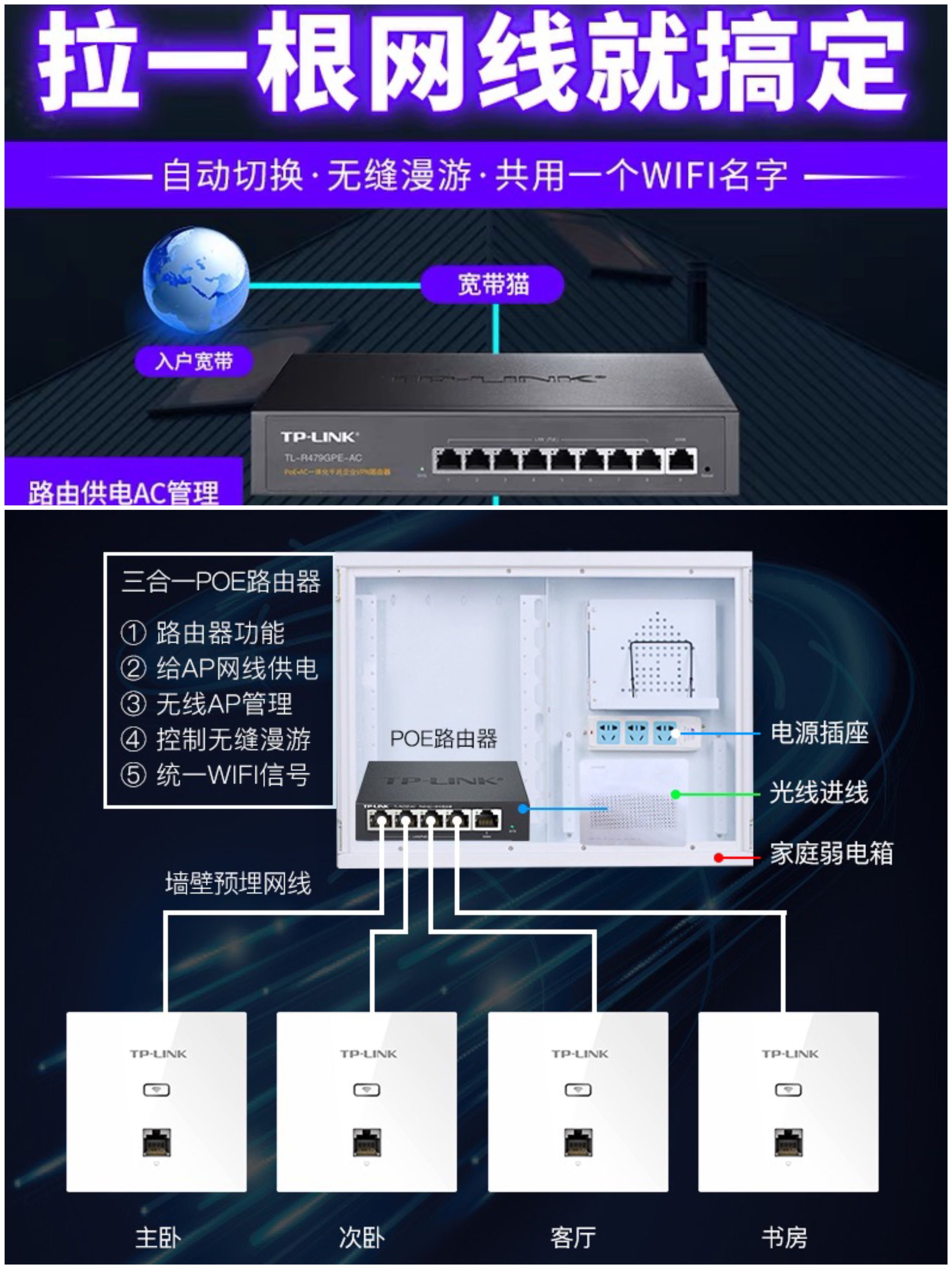 1. 购买路由、AP面板、安装宽带(送光猫)
