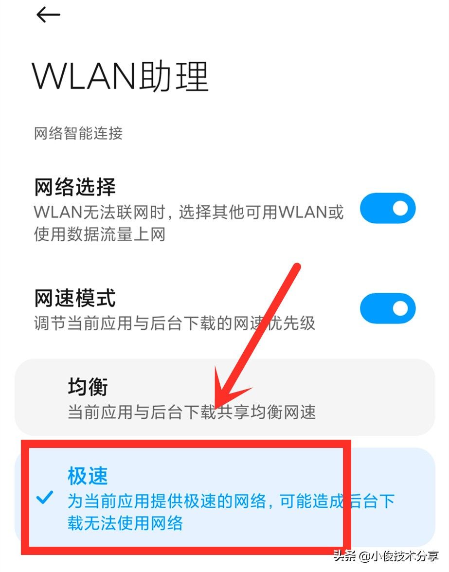 然后选择第一个【网速模式】,打开【网速模式】之后,就会出现菜单选项卡,在这里我们直接选择为【极速】模式