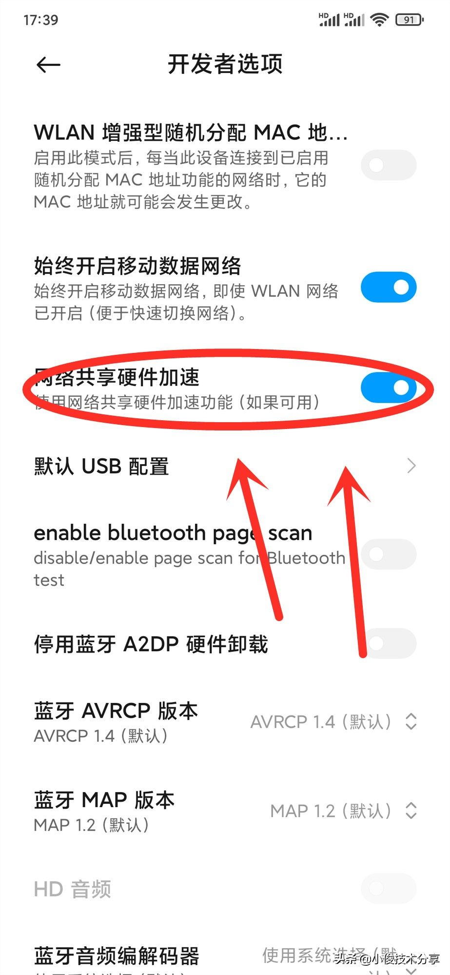 在【更多设置】界面直接选择【开发者选项】,接着往下找到【网络共享硬件加速】,把这个开关打开就可以了!