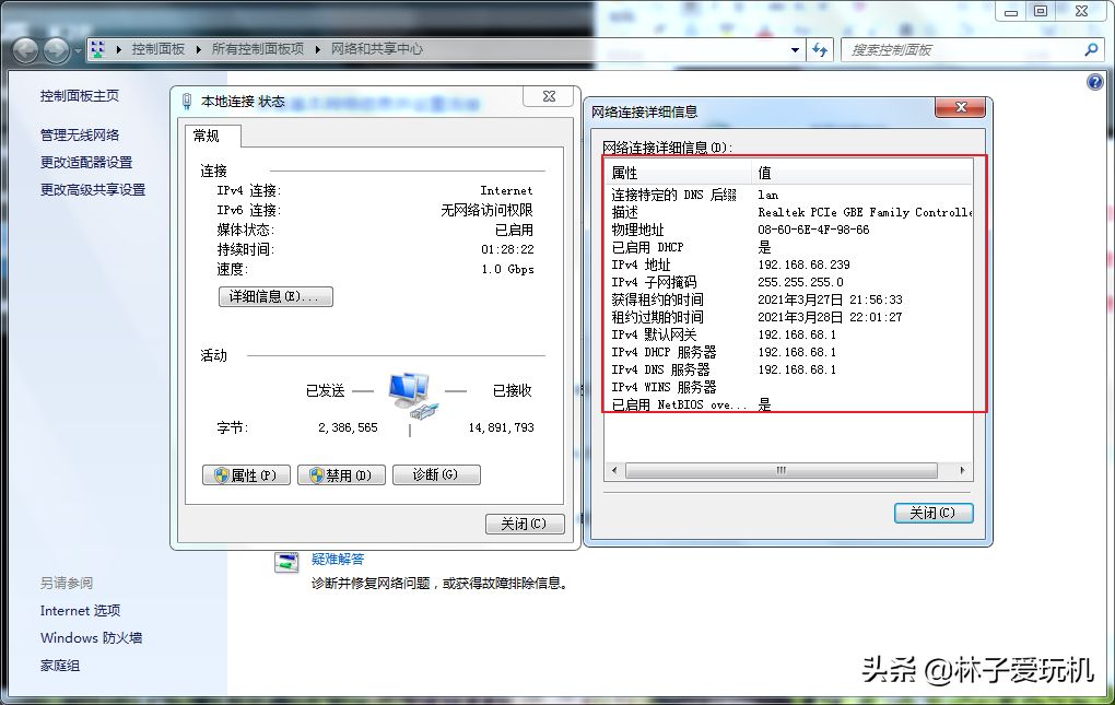 细心的小伙伴可能会注意到了,获取到IP地址和DNS信息发生了变化,全部变成主路由器的信息。