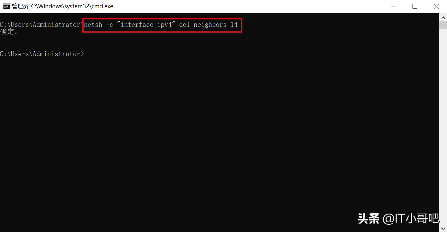 命令格式:netsh -c "interface ipv4" del neighbors Idx