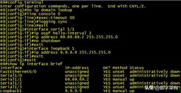在R9上启用OSPF协议,宣告网络,划分区域