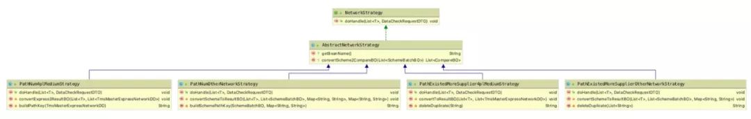 此外,还有一种场景也可以使用策略模式,那就是业务系统中有很多业务网络,不同网络之间有一些差异;本次所实现的检查工具,有几个涉及到多个网络,今后可能会涉及到所有网络。