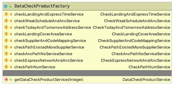 - DataCheckProductFatory:由getDataCheckProductService方法根据输入参数决策使用哪个数据检查工具。