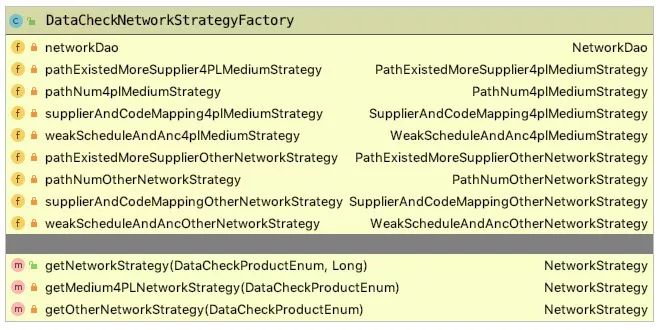 - DataCheckNetworkStrategyFactory:用于决策使用哪种网络处理策略,因为将策略分为了2类(4PL网络和其他网络),所以需要传入两个参数才能决定使用哪种策略。