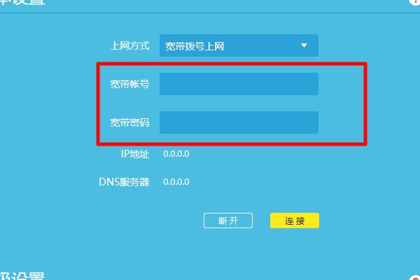 5、然后输入宽带账号密码,宽带帐号密码就是电脑拨号所使用的帐号密码。