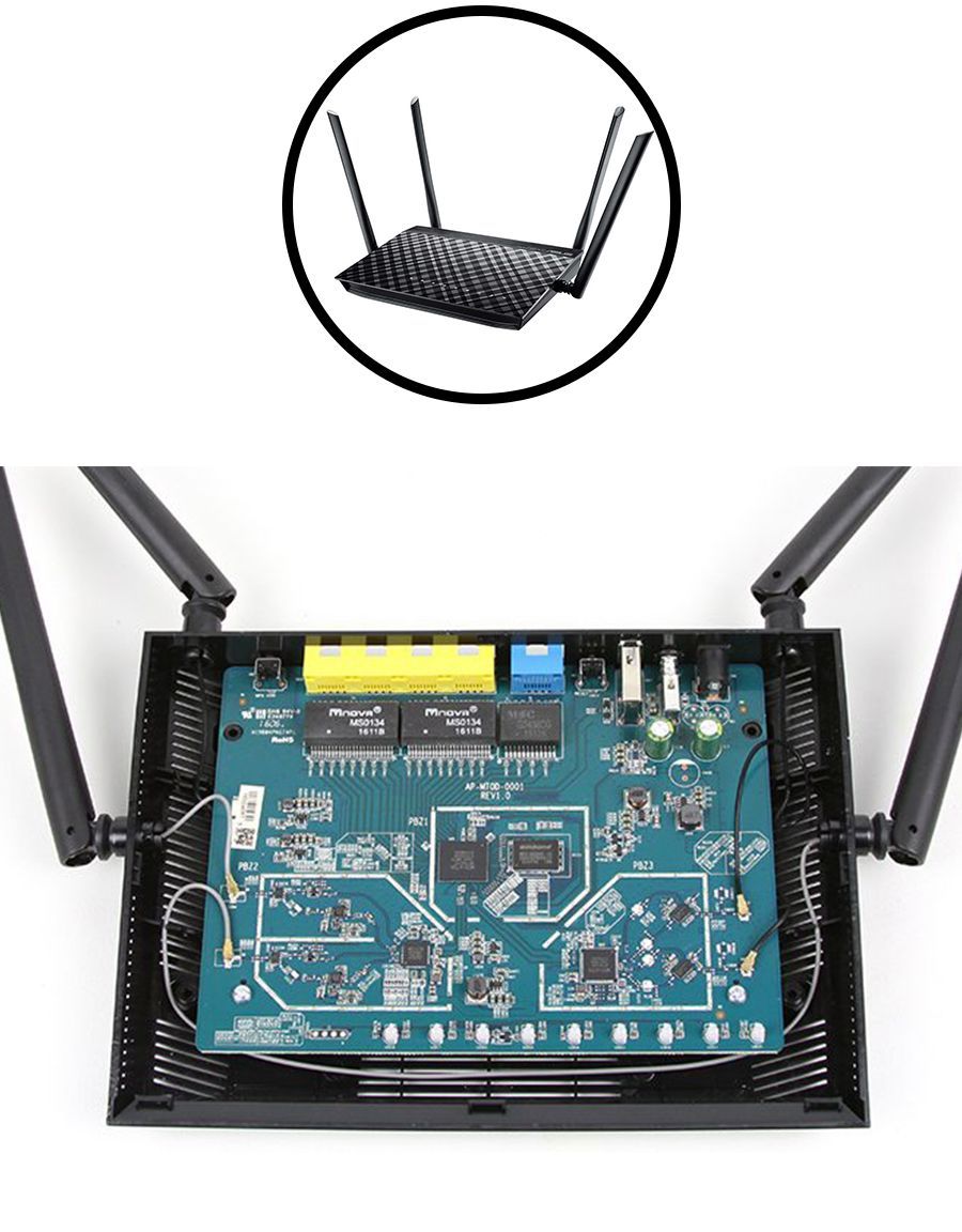 先来看华为的 WS5200 四核版,采用的是华为自己的处理器,想刷三方固件的朋友就可以略过了。CPU 是海思 Hi5651T,5G 芯片是 Hi1151,2.4G 和 5 G 都有功放,RAM 是 128MB 的,如果大家是华为手机的用户,或者有 Mesh 组网的需求,可以考虑这个。其它用户嘛,看看别的吧。