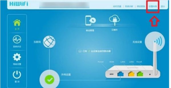 3、此时,在右上角会有看到“设置向导”的按钮,点击“设置向导”,然后把自己家的上网账号和密码填写进去,如下图所示: