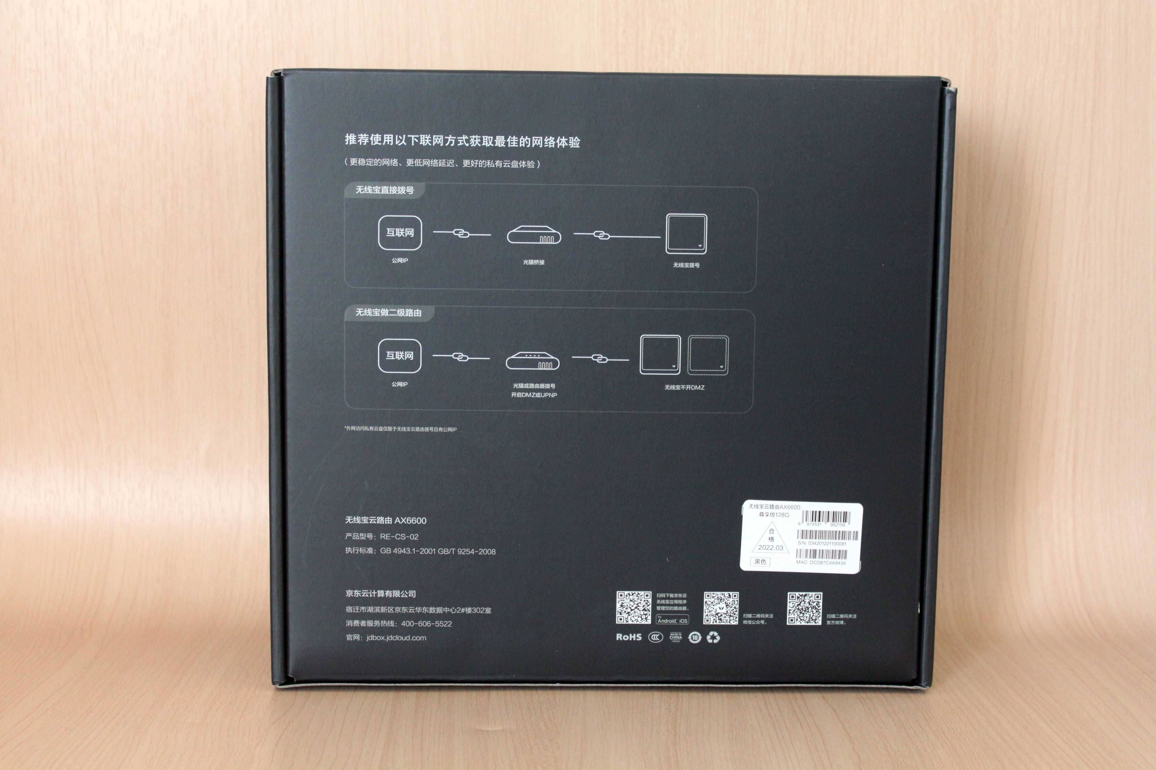 在包装盒的后面,可以看到路由器两种的联网方式,方便进行网络的布局。产品的性能参数和生产商等信息,也可以从背面获悉。