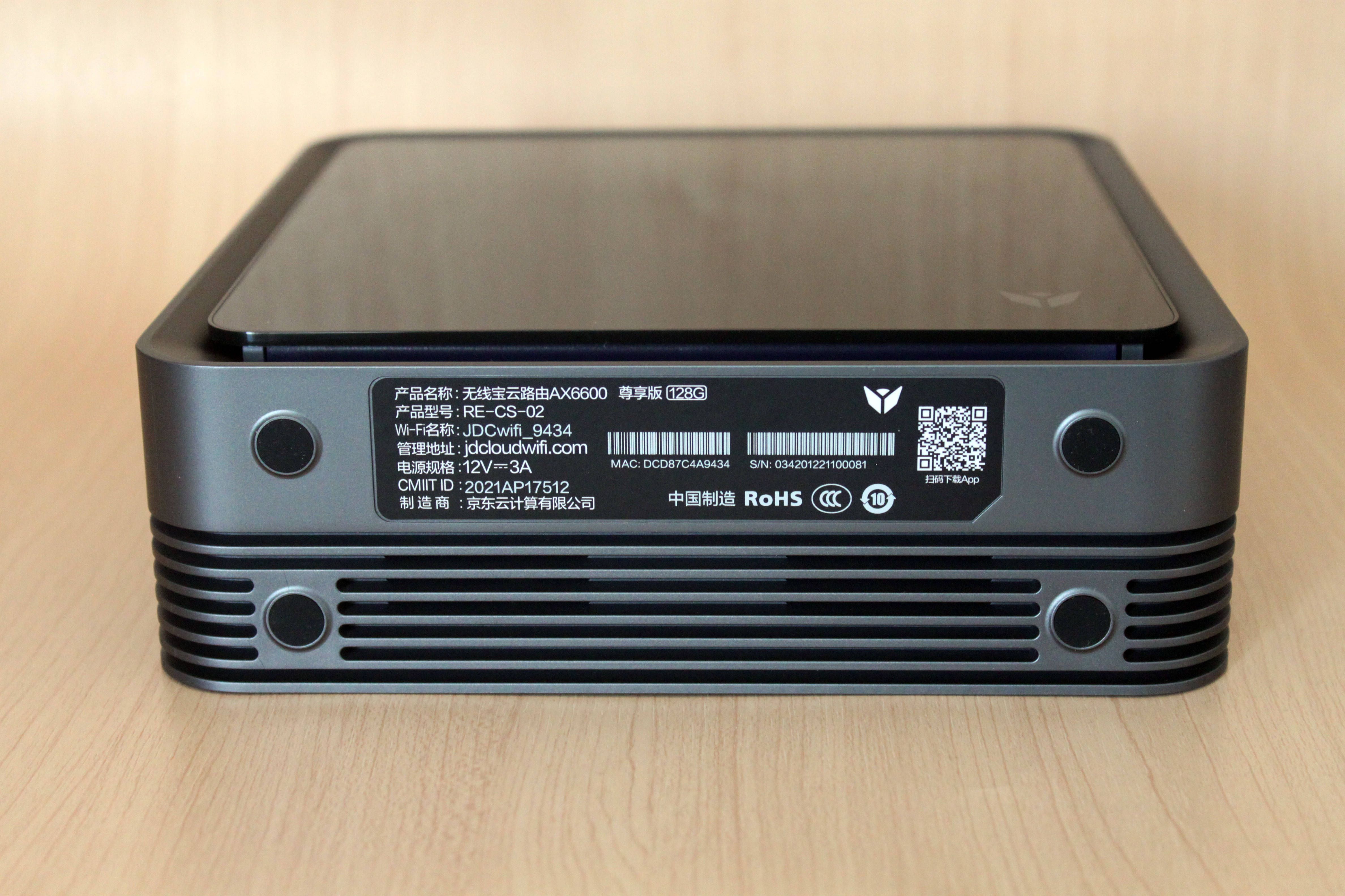 雅典娜这款路由器前面采用了一块显示屏的设计,可以对时间、上传网速、下载网速、每天积分等信息进行显示,这样让一些数据具有可视化,方便对一些数据进行获知。在屏幕的右下角,可以看到京东云的logo。