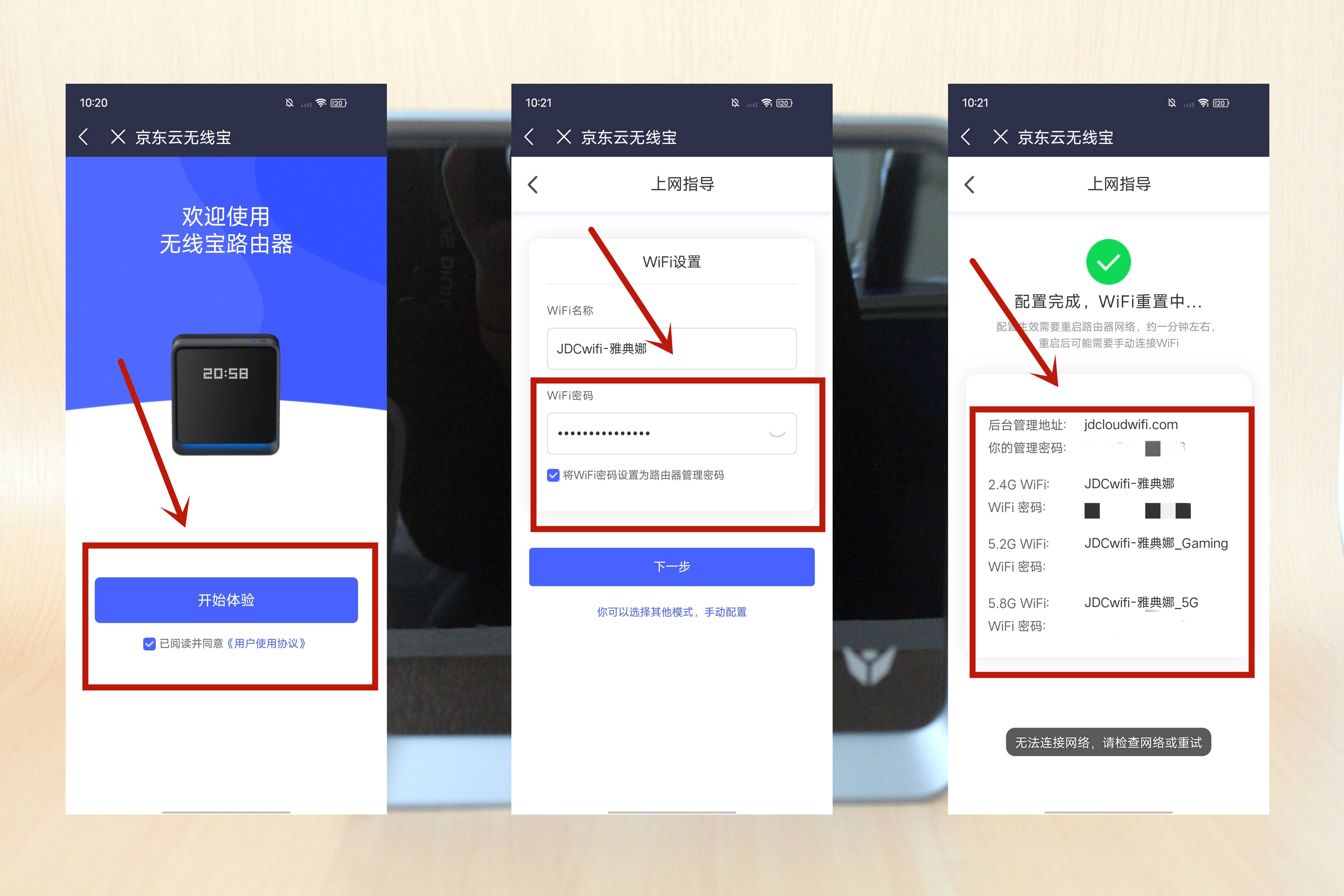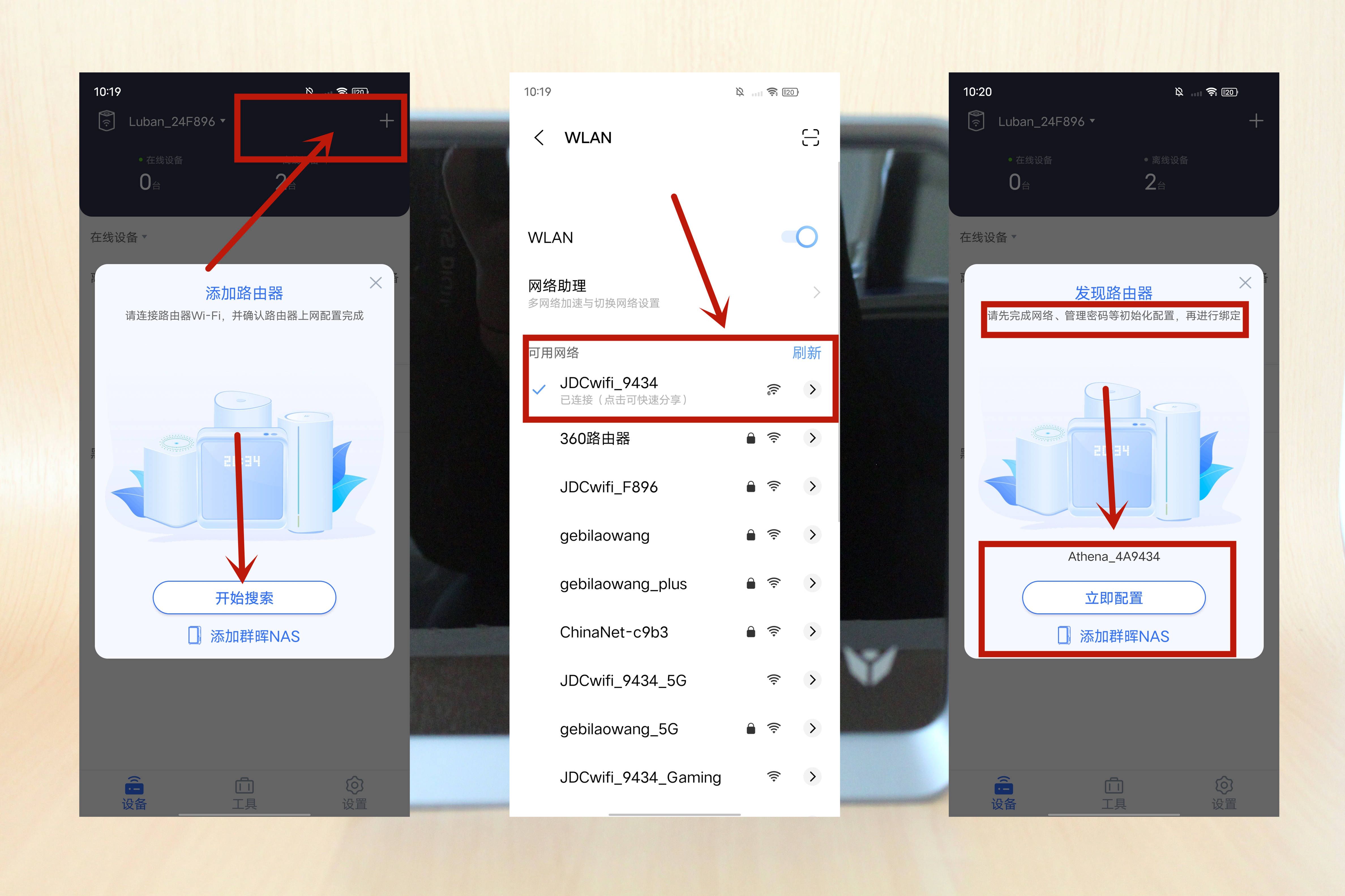 首先在手机上下载“京东云无线宝”APP,在APP中点击右上角的“+”号就行路由器的添加,选择路由器wifi进行连接,找到增加的路由器即可,准备进行路由器wifi的设置。