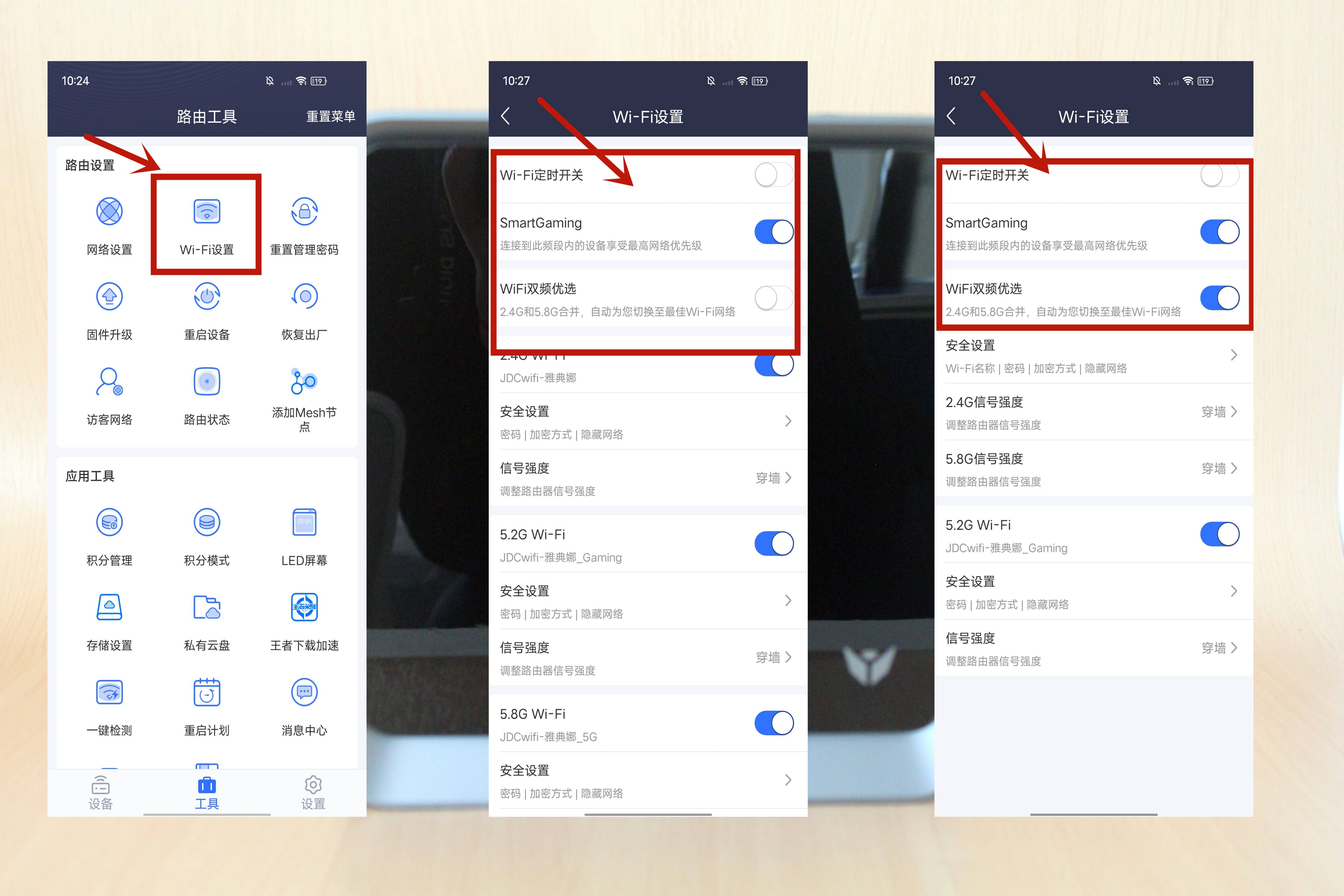 同样在APP中可以对wifi进行设置,设置wifi的形式,也可以对各个频段的wifi进行分别设置,这个就可以根据家里的实际使用情况进行个性化设置。